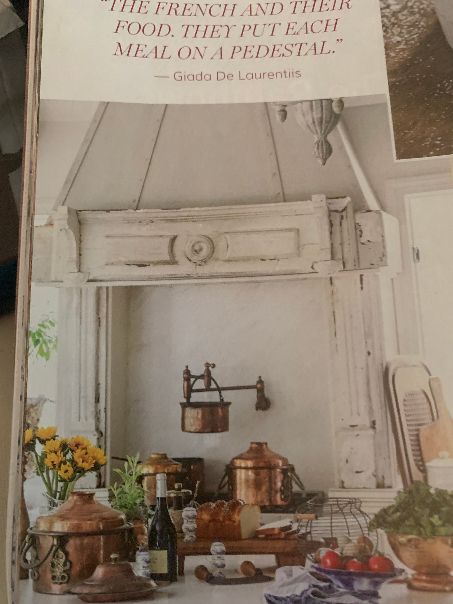 Kitchens are always adorned with lovely copper pans and strainers and different shaped wooden boards that hold homemade brioche loaf, quiche Lorraine, and oh my favorite chocolate soufflé.